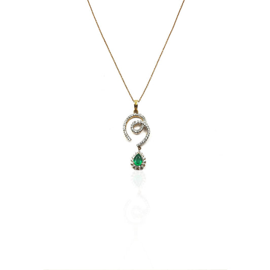 Diamond Pendant with Sparkling Diamonds and Emerald Drop