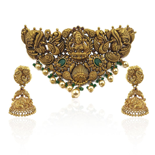 Goddess Maa Laxmi Antique Gold Necklace Set