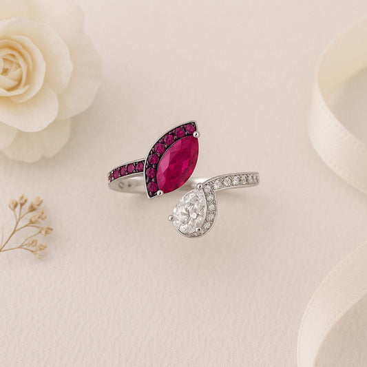 Elegant Bypass Ring with Ruby and Diamond PearsRegular price Rs. 105,994.00Regular priceUnit price / perRs. 124,699.00Sale price Rs. 105,994.00Sale