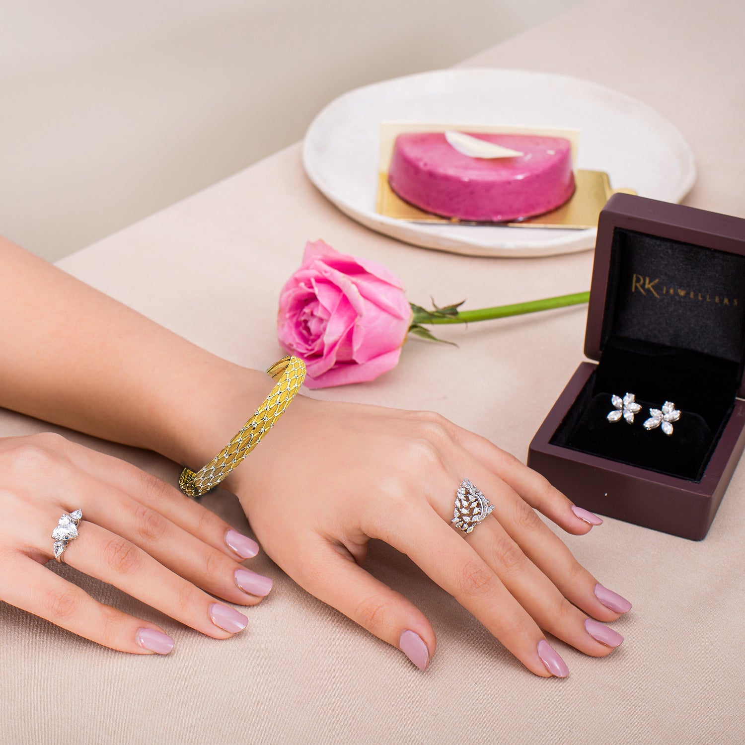 We offer a lifetime service for all our products, i.e., we don’t charge for the labour that is put into repairing the piece. But if there is material put into it like gold or diamond, that gets charged. By getting RK Care, you get a lifetime service including material. Only 10% of the total product value will be charged.