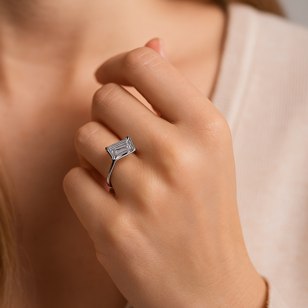 Party Wear Diamond Ring Studded With Emerald Shape Diamond in 18 Kt Black Gold.