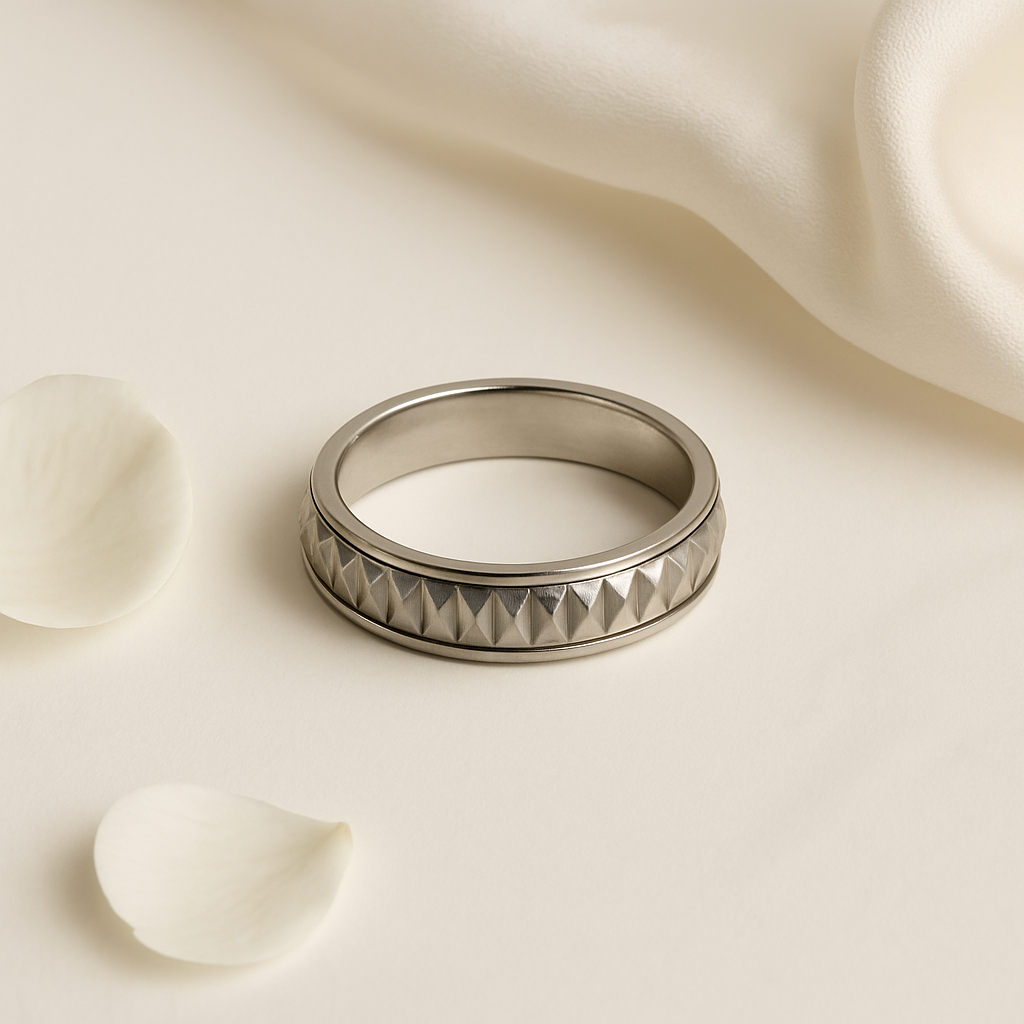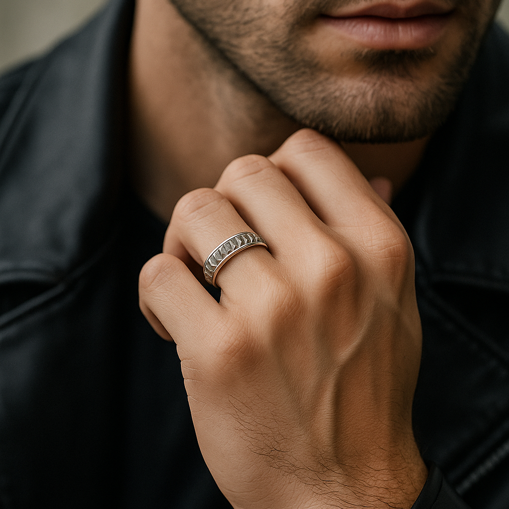Textured Platinum Men’s Ring with Bold Geometric Finish