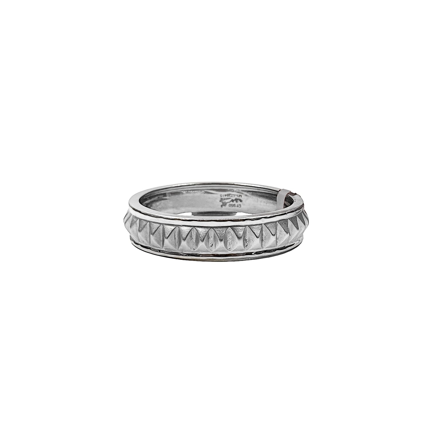 Command attention with this striking platinum ring, crafted with a bold pyramid-studded texture that wraps around the band. The geometric, diamond-cut pattern gives the ring a modern, edgy aesthetic while retaining the timeless elegance of platinum. Expertly polished edges contrast with the textured center, creating a visually dynamic piece. Built for the man who appreciates sharp style and durable luxury, this ring is ideal for everyday wear, milestone occasions, or as a contemporary wedding band. It's more than just a ring—it’s a statement of confidence and modern masculinity.