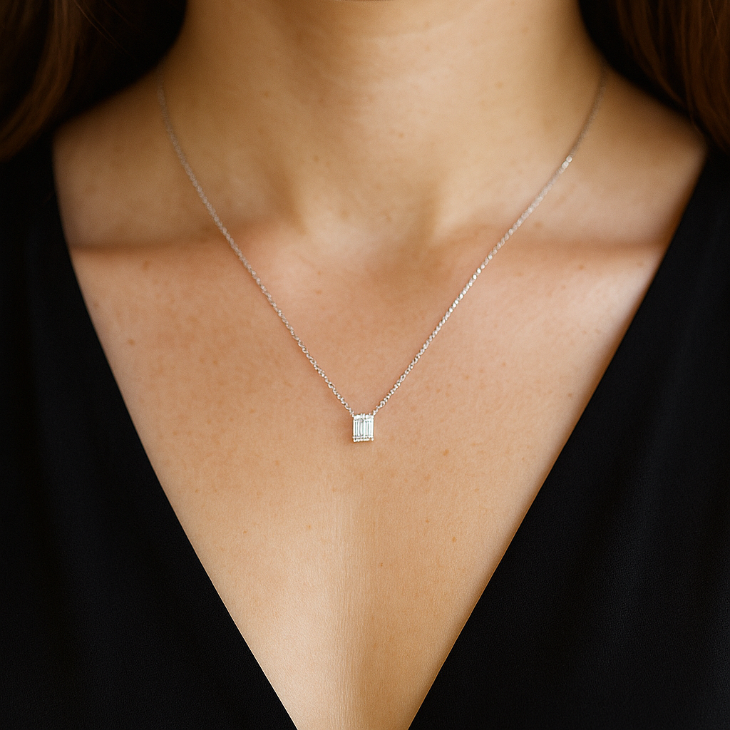Elevate your elegance with this timeless 0.71 Ct Emerald Cut Solitaire Diamond Pendant. Crafted to perfection, the pendant features a stunning emerald-cut diamond that radiates brilliance with every movement. Set in a sleek white gold chain, its minimalist design ensures the diamond remains the star of the show. Whether worn for everyday sophistication or special occasions, this pendant adds a touch of effortless luxury to any outfit. A perfect gift for her—or a classic piece to treasure for yourself.